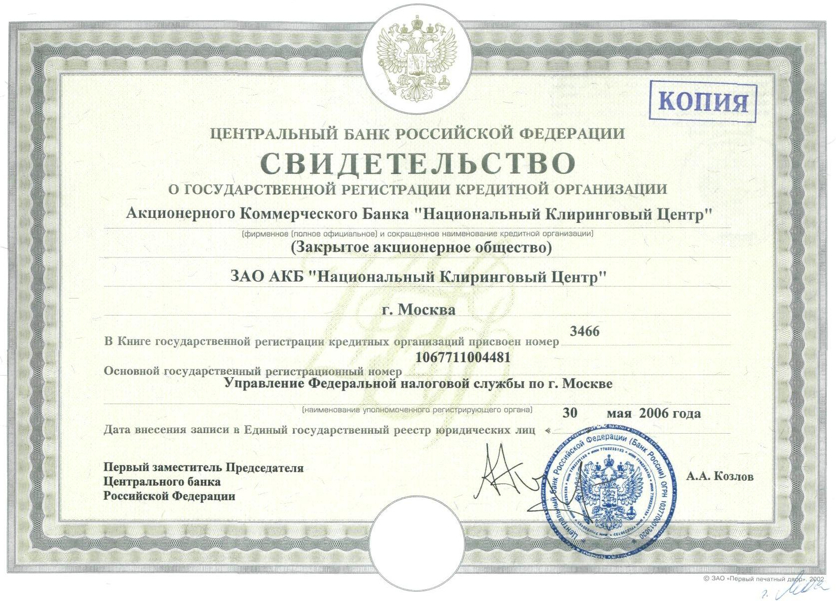 Лицензия № 077-00003-000010 от 18.12.2012 на осуществление клиринговой деятельности